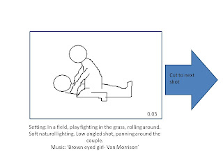 We have decided to use 'Brown Eyed Girl'- by Van Morrison as it is a happy song that we feel depicts the feeling of love. The lyrics talk about two people being in love from the males perspective and it talks about playing around and having fun in the grass- this relates to our shots that we are planning to use. The end of the song talks about the split up between the two lovers which foreshadows the break up of love and danger that Sophie is going to experience although it is still being sang in a happy tone therefore showing how blissfully unaware she is of this fact.